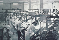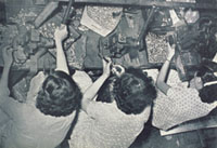 一家紡織廠的檢查室內,女工正檢查剛從織布機編織成的布匹。.