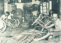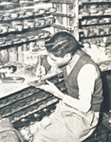 在一九五四年,近五十萬香港人平常均穿著木屐上街。圖示工人正為一對木屐著色。
