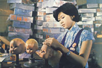 香港生產的洋娃娃乃舉世知名。工人利用特設的機械為洋娃娃的頭臚縫上金黃的秀髮,然後再每個進行梳理。