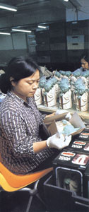 電視片集塑造不少太空英雄。圖中玩具的影片「星球大戰」的人物「瑜達」正由女工包裝,以備運往美國。