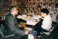 本港一家鐘表廠商正在陳列室向外商推薦新產品。