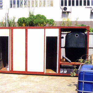 這產品是一個能將廢水循環沖廁之流動廁所。沖廁後之廢水先經過隔水系統,固體廢物會經過堆肥程序處理,而分隔出來之廢水會經過有氧反應,吸收過程及殺菌程序處理,處理過之廢水便會循環再用於沖廁。本環保廁所由太陽能提供電力,適用於偏遠遊客區或公共設施。