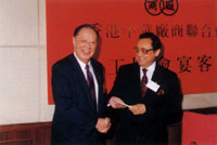 廠商會會長梁欽榮(右)於答謝宴特別鳴謝廠商會副會長兼工展會主席梁乃榮(左)對工展會付出之努力。