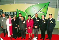 廠商會會長陳永棋(左五)、「一九九九年香港環保產品獎」統籌委員會主席蘇包陪慶會長助理(右四)、影視紅星葉童(左二)及其他主禮嘉賓出席「一九九九年香港環保產品獎展示廊揭幕禮」時合攝。
